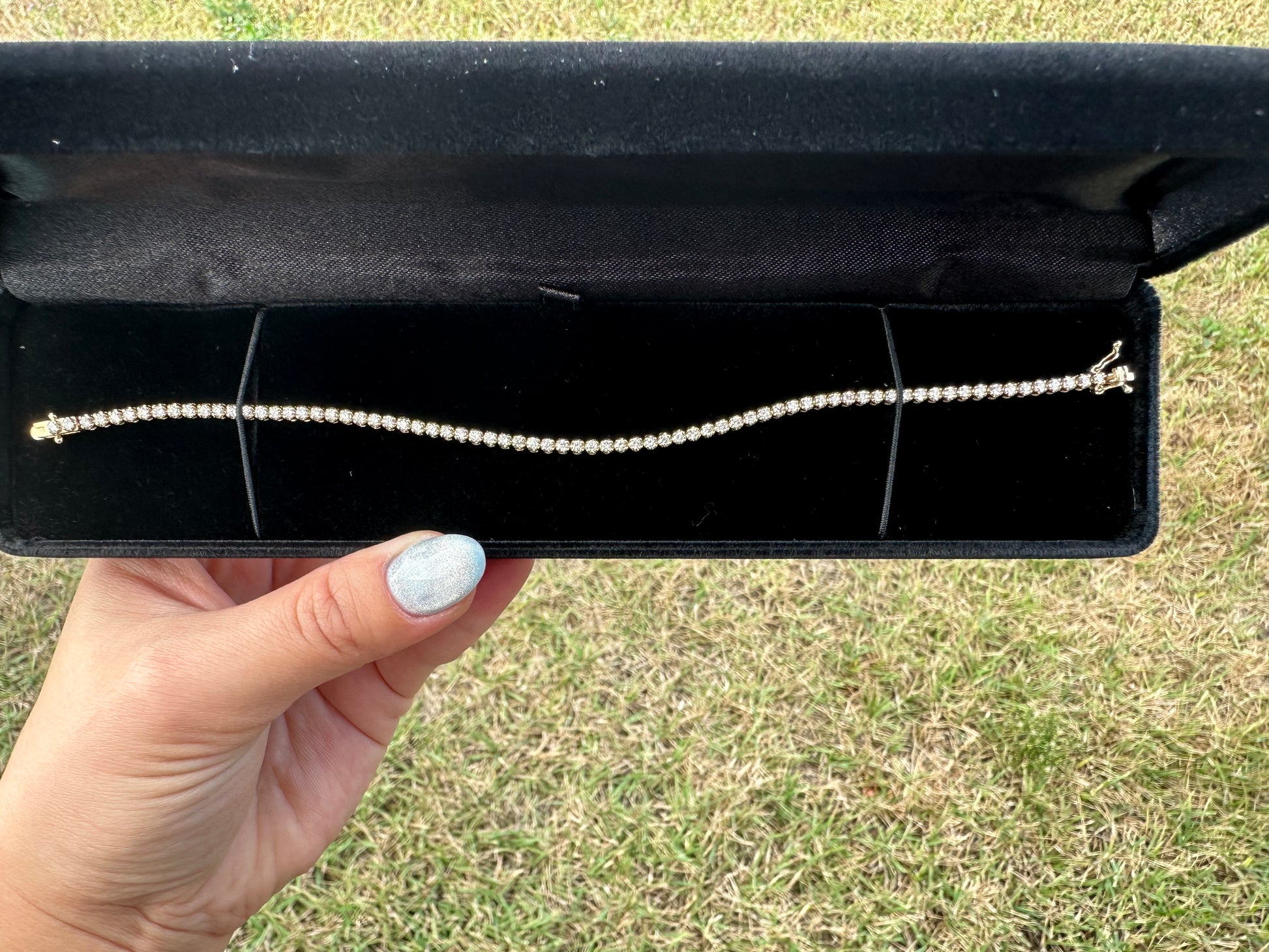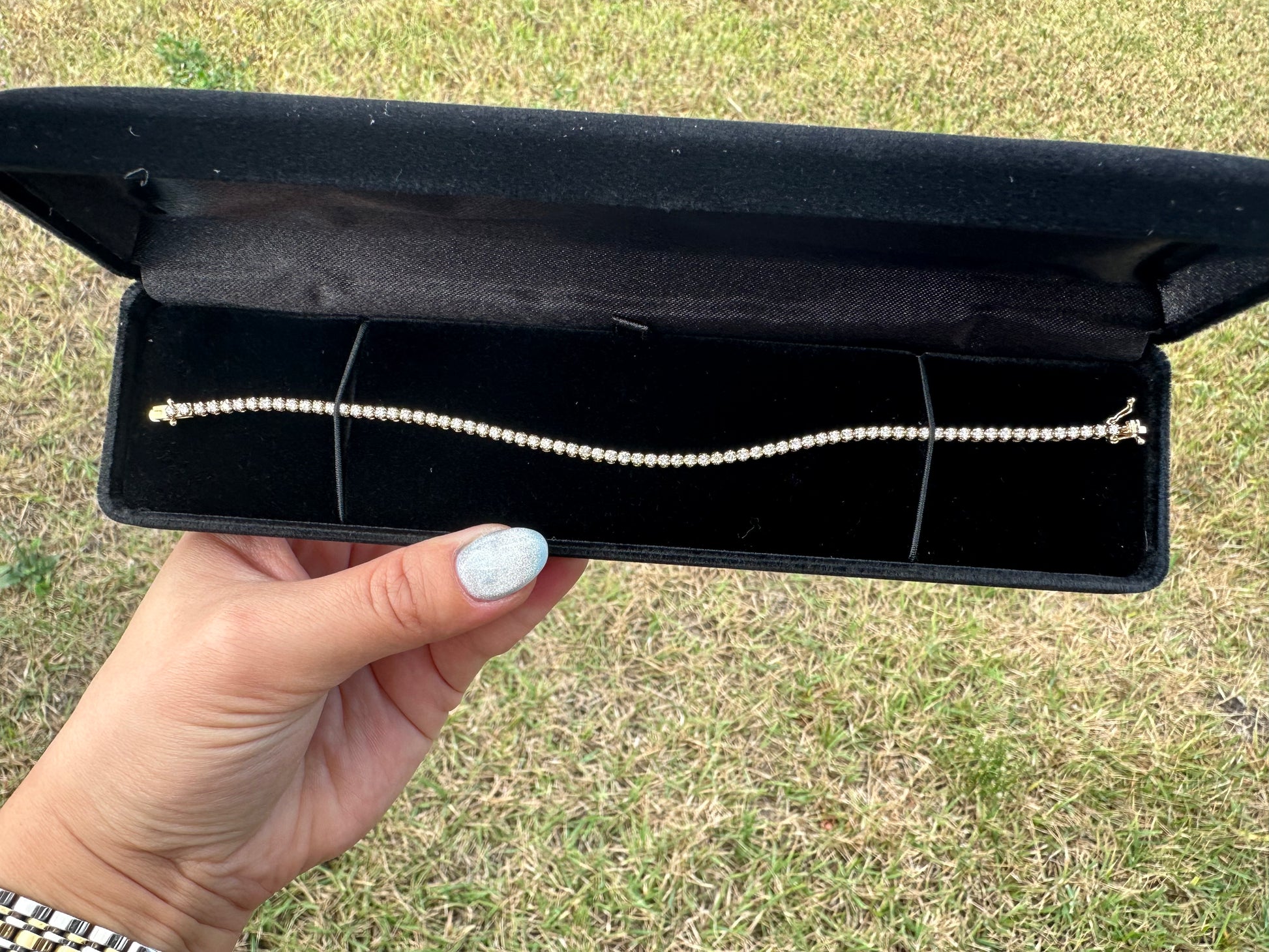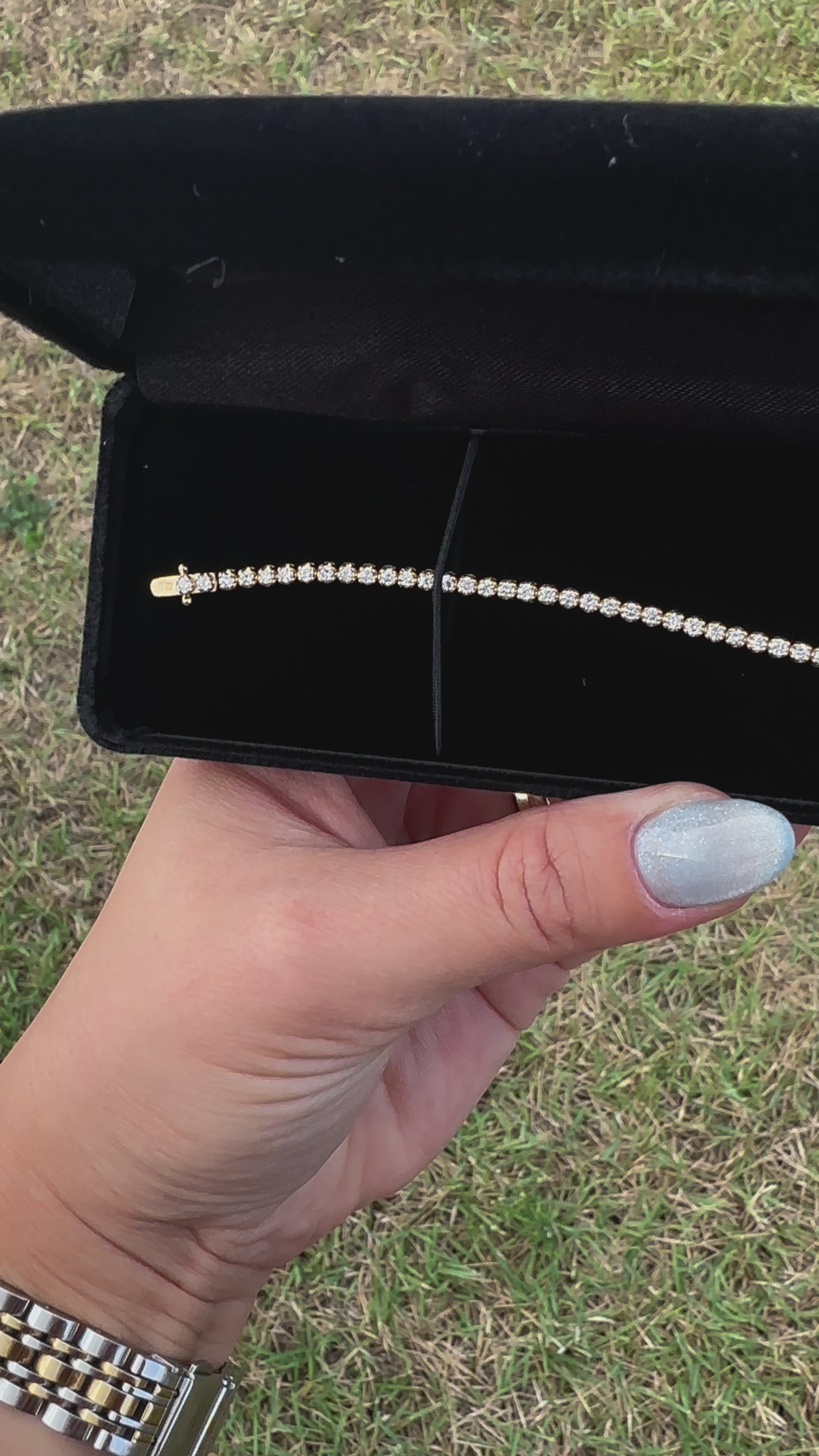 Crafted in 14K yellow gold, this bracelet features 73 round brilliant lab-grown diamonds totaling 2.01 carats. The diamonds are graded E to F in color and VS in clarity, ensuring a bright, near-flawless sparkle. With a gold weight of 5.43 grams, this piece combines elegance with exceptional quality.